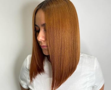 Peinado con secadora que aporta volumen y movimiento natural para un look suave y manejable.