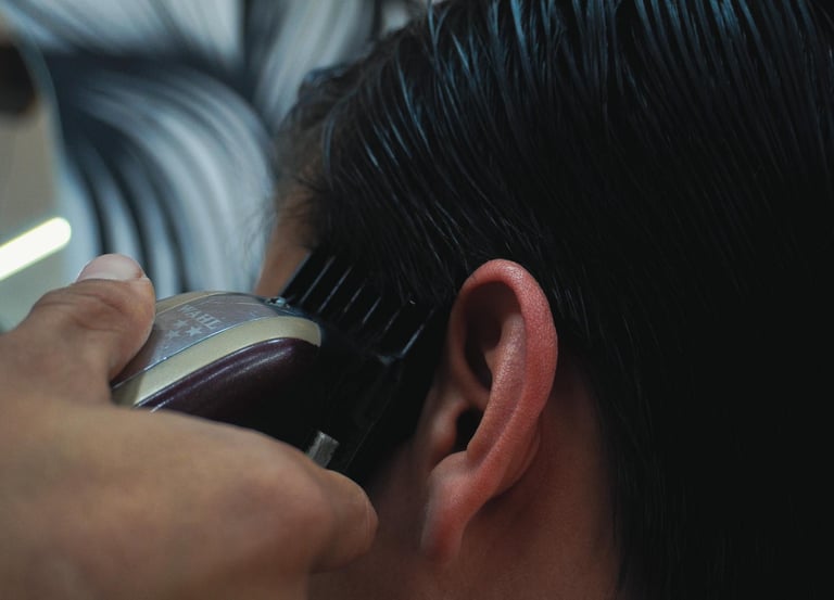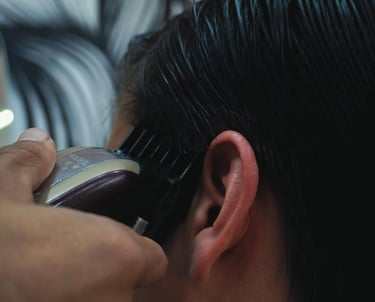 Corte, lavado, estilizado y afeitado completo para un look impecable.